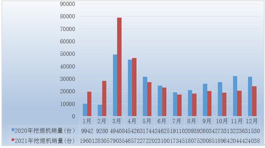 图表:2020-2021年各月挖掘机制造企业销售量