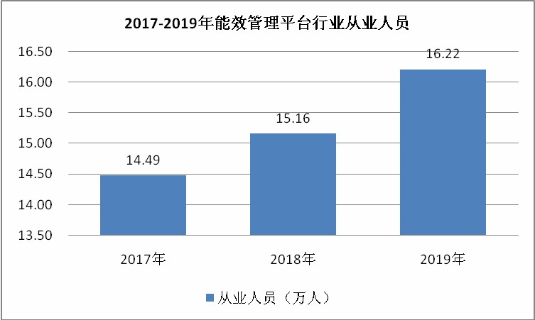 根据数据显示,我国能效管理平台行业从业人员量由2017年的14.49万人增加至2019年的16.22万人,能效管理行业的快速增长使从业人员也快速增加。