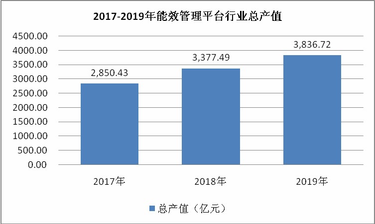 根据数据显示,我国能效管理平台行业总产值由2017年的2850.43亿元增加至2019年的3836.72亿元,同比增长13.59%。
