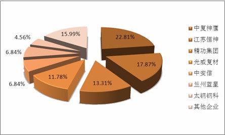 目前中国航空复合材料领域,中航工业旗下三家企业可以为各类飞机提供复合材料,占据国内航空复合材料工业重要地位。然而随着航空复合材料的不断发展,碳纤维复合材料的应用比例在未来将会越来越大。目前碳纤维材料主要生产企业及市场占比如下: