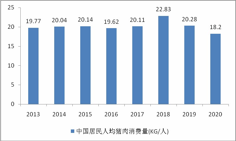 图表:2013-2021年我国居民人均猪肉消费量