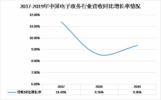 图表:2017-2019年中国电子政务行业营收同比增长率情况