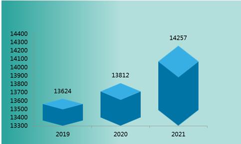 图表:2019-2021年全球融资租赁业务额(亿美元)