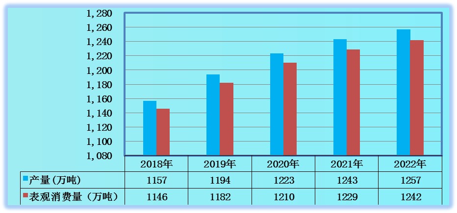 图表:2018-2022年全球超级食品产量、表观消费量