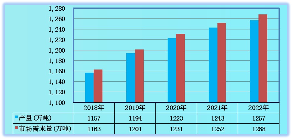 图表:2018-2022年全球超级食品产量、市场需求量