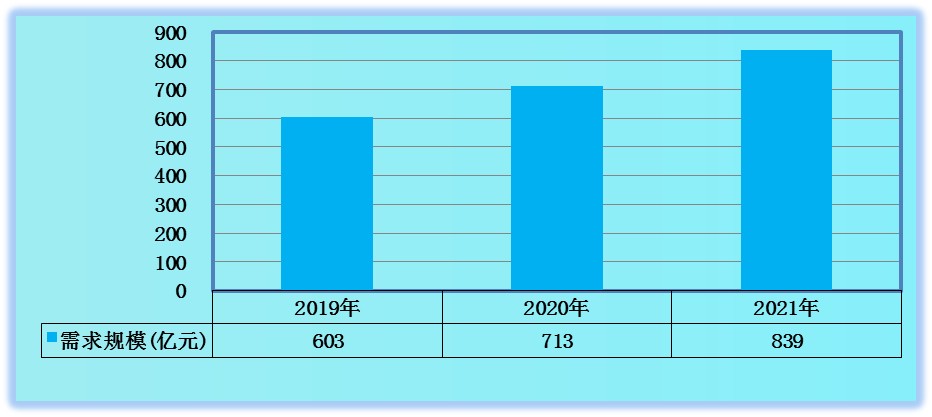 中国诊断试剂行业市场需求保持稳定增长,尤其是近些年在居民收入水平提高、医改推进及医疗保险覆盖范围的提高、人均医疗保健支出提升以及人口结构老龄化的共同驱动下,国内医疗服务需求增长迅猛,诊断试剂产业表现尤为明显、呈现较高速增长,2021年诊断试剂行业市场需求规模达到839亿元,同比增长17.6%。