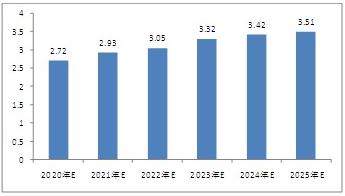 图表:2020-2025年办公椅市场需求预测(亿件)