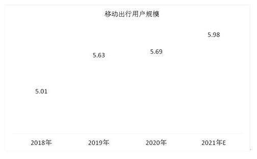 图表:2018-2021年中国移动出行用户规模情况(亿人)