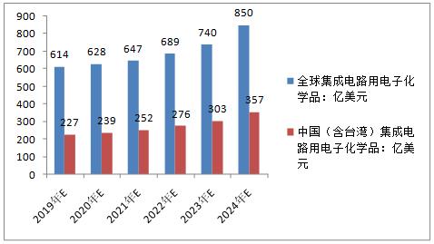 图表:全球及全国集成电路用PCB用电子化学品行业预测