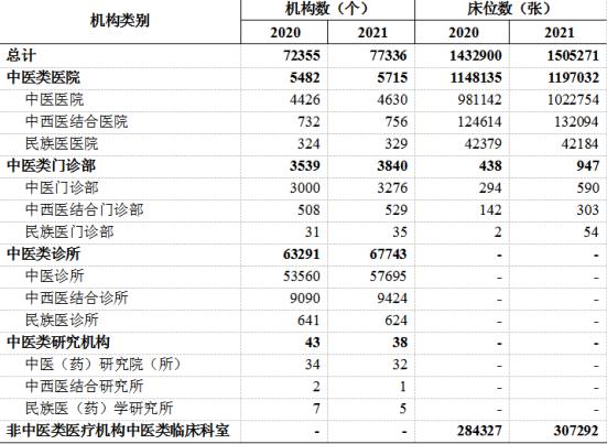 图表:2020-2021年中医类医疗机构数量