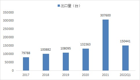根据海关总署数据统计,我国新能源驱动电机出口量呈现增长趋势,2021年新能源驱动电机出口量为307600台,2022Q1出口量为150441台。