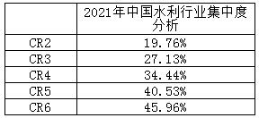 图表:2021年水利行业集中度分析