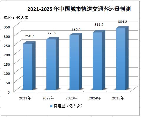图表:2022-2025年中国城市轨道交通客运量预测