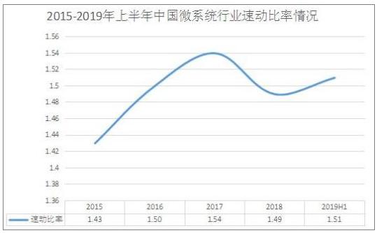 微系统行业对于投入资金的要求较高,所以天津微系统技术行业的整体负债情况偏高,同时行业对于现金的吸纳能力较强,货币资金较高。2019年上半年,中国微系统行业的速动比率约为1.51,行业偿债能力较高。