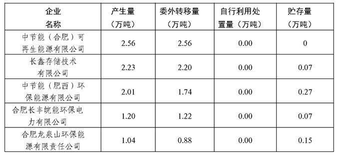 危险废物产生量全省前5位的企业