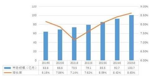 图表:2022-2025电钢琴行业市场规模及增长率预测