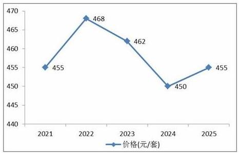 图表:2021-2025年国内惯性导航元件产品未来价格走势预测