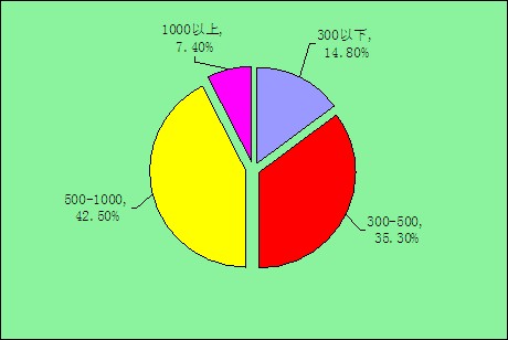 图表:消费者每月用于美容美发方面的花费情况(单位:元)