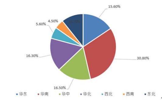 目前汽车电动尾门生产商大多数分布在华南地区,占比达到30.8%。
