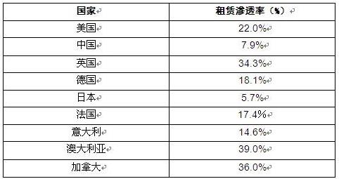 从各国租赁行业发展来看,我国目前已成为仅次于美国的世界第二大租赁市场。未来在相关产业政策推动下,融资租赁行业将逐步向高质量转型,渗透率有望得到进一步提升。