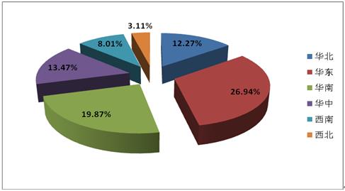 图表:中药化妆品行业各区域市场占比情况