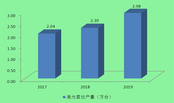 图表:2017-2019年中国激光雷达产量