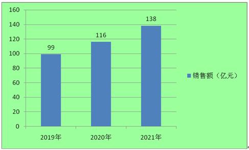 图表:2019-2021年宠物药品行业销售额