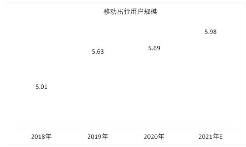 图表:2018-2021年中国移动出行用户规模情况(亿人)