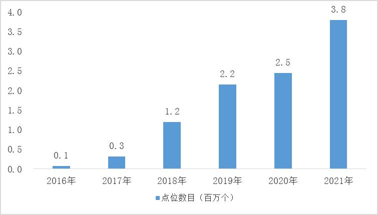 近年来,点位规模快速扩张、可提供共享充电宝服务的消费场所类型快速扩大,使用户借还共享充电宝时更便利。中国已覆盖共享充电宝服务的点位数目由2016年的0.08百万个增至2020年的2.45百万个。未来,预期点位覆盖范围将进一步快速扩展。2021年其点位数目达到3.8百万个。