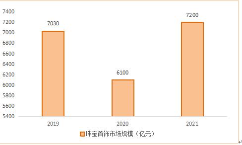 2021年中国珠宝首饰市场总规模一举跃上了7200亿元新台阶,同比2020年的6100亿元增幅达18%。2020年珠宝首饰行业市场规模受疫情影响下滑明显。
