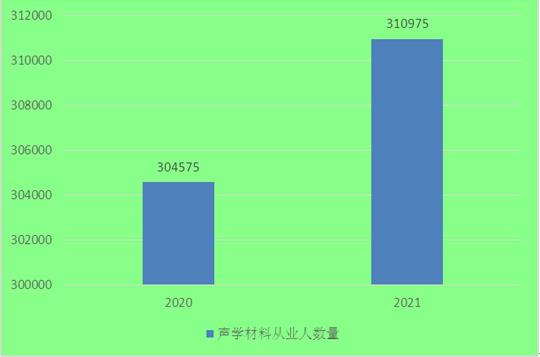 中国声学材料的从业人数从2020年的304575万人,增加到了31万人左右,基于企业的增长从而带动了声学材料行业的从业人数的增加。