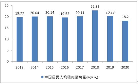 图表:2013-2021年我国居民人均猪肉消费量