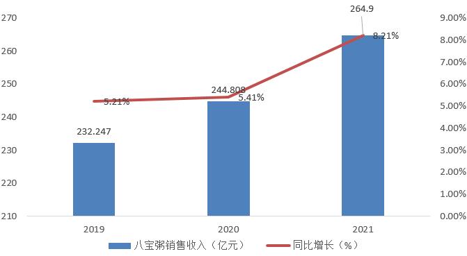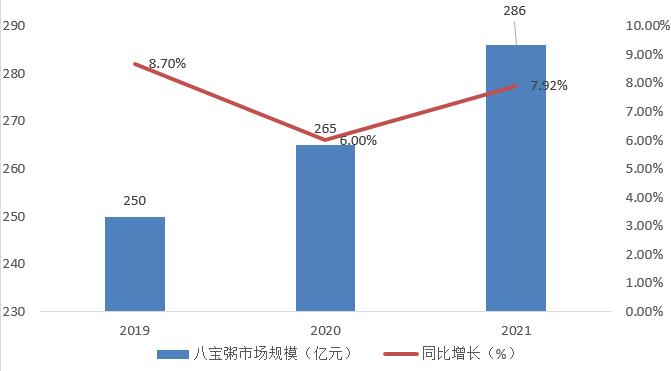 2021年八宝粥行业市场规模约为286亿元,年增幅在6%左右。