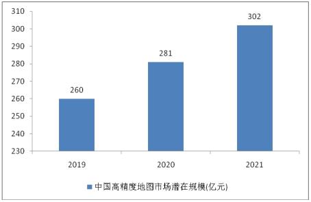 图表:2019-2021年我国高精度地图潜在市场规模