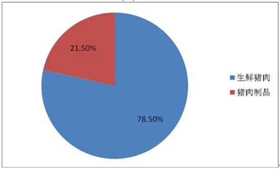 猪肉为世界各地最常见的消费肉品。目前猪肉市场中主要为生鲜猪肉,占整体的78.5%。猪肉制品占比较少,仅有21.5%。