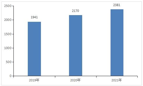 图表:2019-2021年我国动漫产业总产值(单位:亿元)