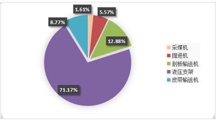 根据中国煤炭工业机械协会数据统计分析,2021年中国煤炭装备行业市场结构中,液压支架需求占比最高,为71.17%,掘进机需求占比为5.57%,采煤机需求占比为5.57%。
