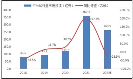 一、2018-2022年中国PTMEG行业市场规模及增速