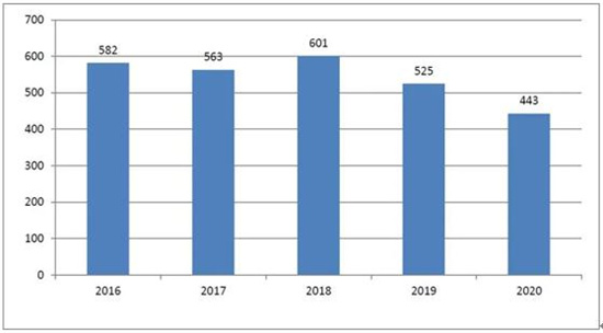 图表:2016年-2020年全球涡桨通用飞机交付情况(架)
