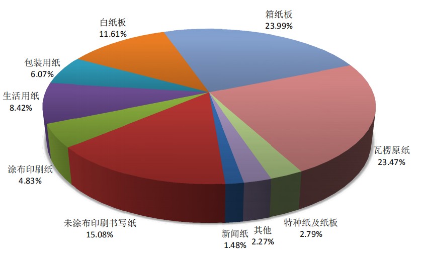 在纸及纸板的消费量中,需求最大的是箱纸板,占比23.99%,其次是瓦楞原纸,占比23.47%。