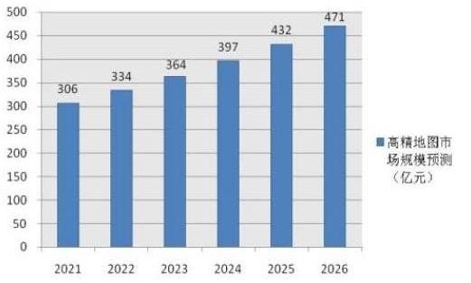 数据显示,中国内外高精度地图行业市场规模能达到约306亿元的水平,到了2026年市场规模将突破470亿元。