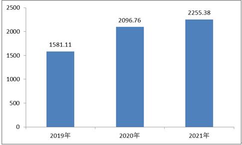 图表:2021年中国手游行业市场销售收入(单位:亿元)
