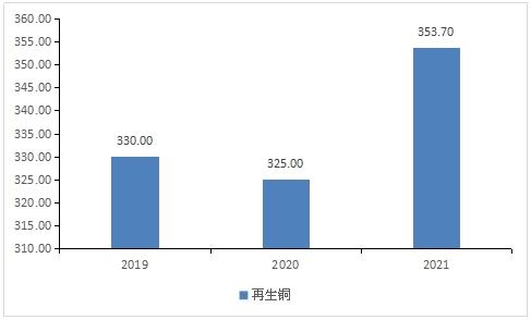 图表:2019-2021年再生钢产量(单位:万吨)