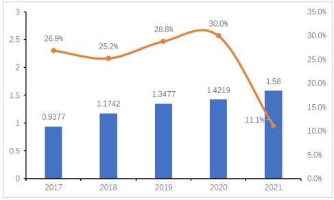 1.农村信息基础设施建设不断完善。在乡村振兴和数字乡村发展战略背景下,农村网民规模持续增加,农村互联网覆盖范围进一步提升。根据官方数据显示,截至2021年12月,我国网民规模达10.32亿,较2020年12月增长4296万,互联网普及率达73.0%。其中,农村网络宽带用户数达到1.58亿,农村网民规模已达2.84亿,农村地区互联网普及率为57.6%,较2020年12月提升1.7个百分点,城乡地区互联网普及率差异较2020年12月缩小0.2个百分点。