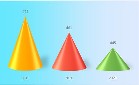 数据显示,2019年我国高尔夫球场数量从2018年的482家下降到478家,到2020年我国高尔夫球场数量449家。从国家清理整顿的情况看,2021年我国高尔夫球场数量继续小幅下滑,2021年球场数量约为445家。