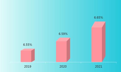 2019-2021年中国智能制造行业利润率由6.55%上升到6.65%。