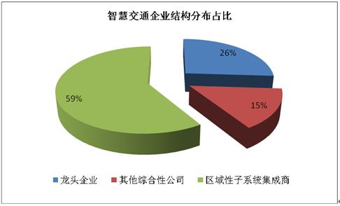 据数据显示,智慧交通企业占比最多的是区域性子系统集成商,占比59%,其次是龙头企业占比26%。