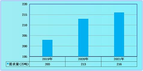 图表:2019-2021年中国板栗行业需求量