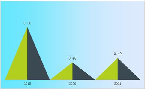 2019-2021年我国应急储备行业总资产周转率由0.56下降到0.49。