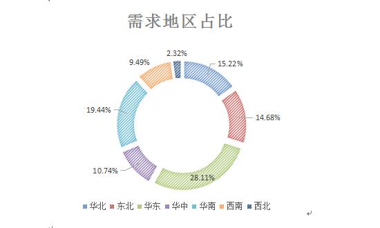 柴油发动机主要应用的领域的商用车和工程机械,因此柴油发动机的需求区域主要就集中在商用车和工程机械行业的生产制造地区,其中华东地区和华北地区是我国商用车和工程机械的主要生产地区,所以对柴油机的需求也就越高,两个地区的需求占比将近50%。
